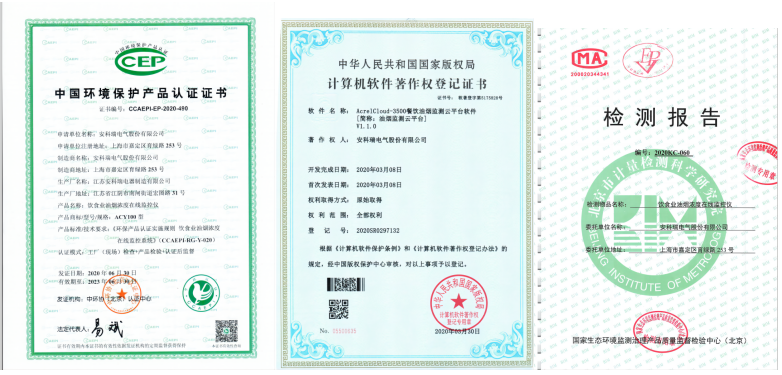 認證證書)并取得對應(yīng)的軟件測試報告《油煙濃度在線監(jiān)測儀測試報告》,還取得計算機軟件著作權(quán)。