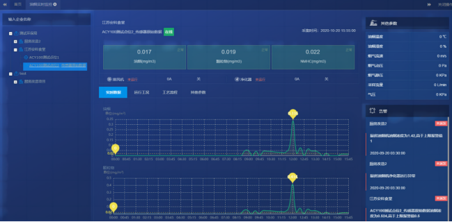 現(xiàn)場安裝油煙在線監(jiān)控儀,實時監(jiān)測排煙煙道內(nèi)的油煙、顆粒物和非甲烷甲烷總烴等濃度,同時對油煙凈化器和風機的運行電流和開關(guān)狀態(tài)進行監(jiān)測,一旦排放超標,系統(tǒng)會發(fā)出告警信息。