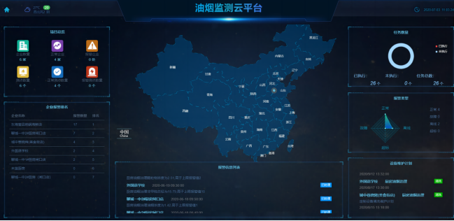 顯示告警企業(yè)數(shù)量,告警率,包括超標、在線率統(tǒng)計。