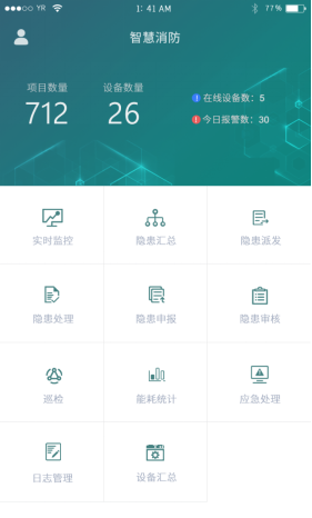 APP支持Android、iOS操作系統(tǒng),方便用戶查看電氣火災(zāi)、防排煙、消防水、消防設(shè)備電源、防火門、消防設(shè)備管理、視頻監(jiān)控、火災(zāi)報(bào)警等子系統(tǒng)的實(shí)時(shí)監(jiān)控?cái)?shù)據(jù)、報(bào)警信息、能耗統(tǒng)計(jì)等。
