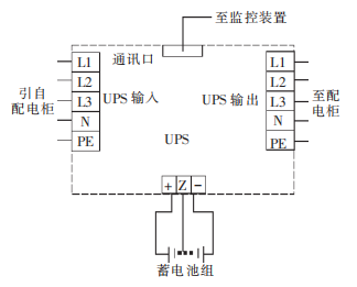 數(shù)據(jù)中心IDS 2000 供配電系統(tǒng)的供電電壓為 380 V 三相電,主要為所有弱電機柜內(nèi)的設(shè)備、應(yīng)急照明、區(qū)域中央控制指揮中心智能調(diào)度臺和其他智能化設(shè)施供電。在數(shù)據(jù)中心的列頭柜配置一體化配電集成柜,為空調(diào)、監(jiān)控、UPS 和網(wǎng)絡(luò)設(shè)備供電。在行間中部配置 UPS 不間斷電源柜,當兩路輸入電源故障斷電時,機柜自動切換成 UPS 供電,保障設(shè)備不間斷持續(xù)工作。供配電系統(tǒng)接口圖如圖 2 所示。