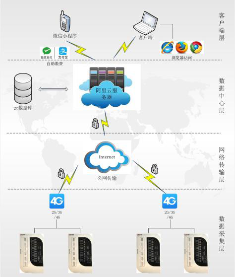 模塊與云端進行通信和數(shù)據(jù)交互。系統(tǒng)能夠?qū)﹄妱幼孕熊嚦潆姌兜娜粘顟B(tài)、充電過程進行監(jiān)控;實現(xiàn)充電支付對接:支持投幣、刷卡、微信支付等多種支付方式,保證支付交易過程的完整性,對充電過程中的異常情況進行有效預(yù)警;實現(xiàn)對下游站級平臺的清算、對賬功能。平臺