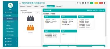 顯示變電所的基本信息(電壓等級、變壓器臺數(shù)、裝機容量、運行容量)、運行狀態(tài)(功率、環(huán)境溫濕度等 、事件信息(遙信事件、遙測事件)、當(dāng)日用能情況(逐時用能趨勢、環(huán)比用能情況) 。