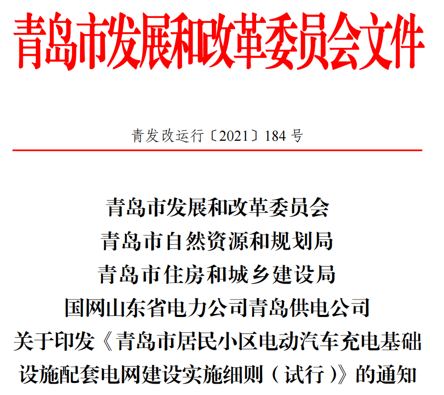 (2)青島市發(fā)展和改革委員會(huì) 關(guān)于印發(fā)《青島市居民小區(qū)電動(dòng)汽車充電基礎(chǔ)