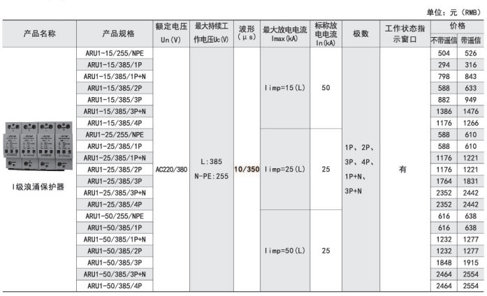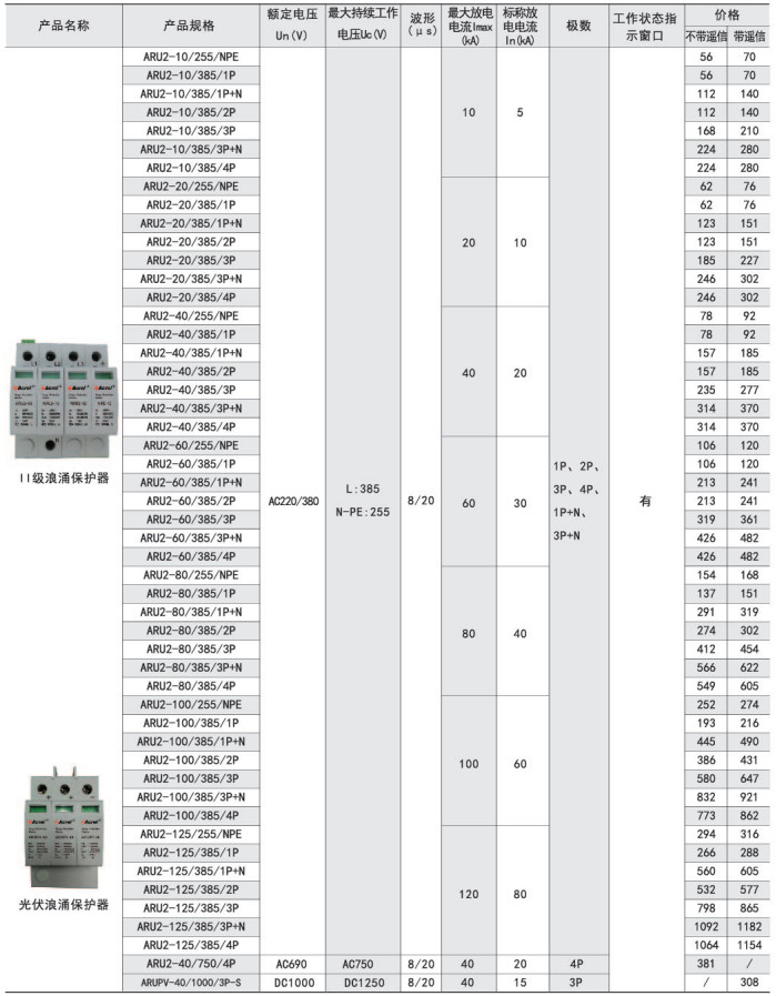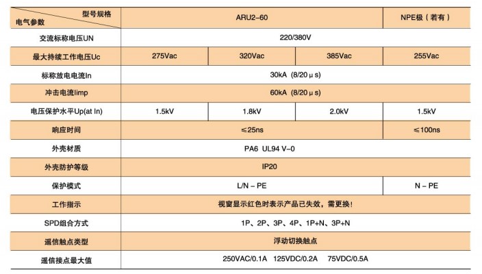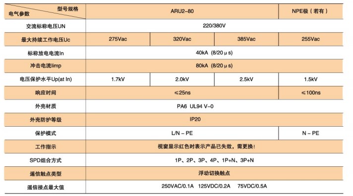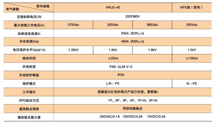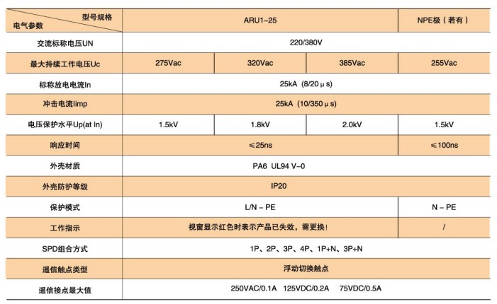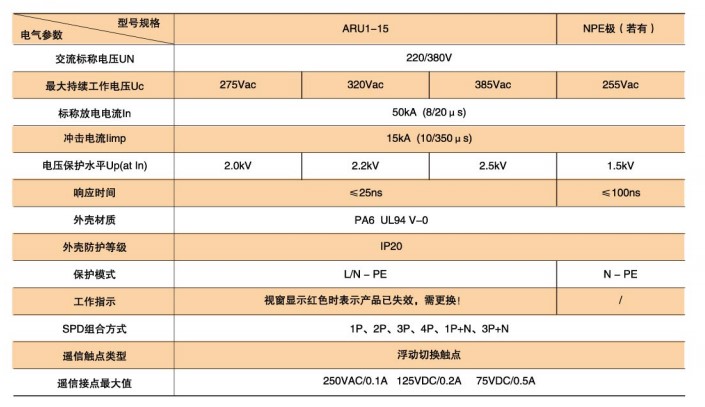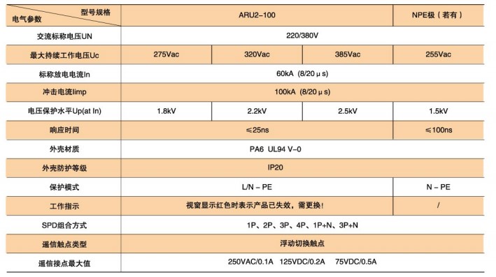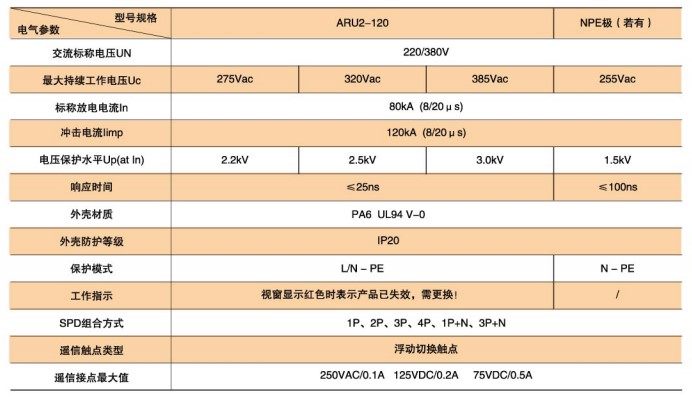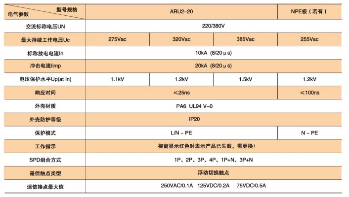 ARUPV-40光伏用SPD技術(shù)參數(shù)