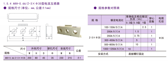 AKH-0.66 Z型系列三相導軌式電流互感器