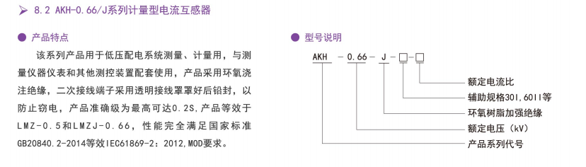 AKH-0.66 J系列計(jì)量型電流互感器產(chǎn)品用于低壓配電系統(tǒng)測(cè)量、計(jì)量用,與測(cè)量?jī)x器儀表和其他測(cè)控裝置配套使用,產(chǎn)品采用環(huán)氧澆注絕緣,二次接線端子采用透明接線罩罩好后鉛封,以防止竊電,產(chǎn)品準(zhǔn)確級(jí)為最高可達(dá)0.2S產(chǎn)品等效于LMZ-0.5和LMZJ-0.66,性能滿足國家標(biāo)準(zhǔn)GB20840.2-2014(等效IEC61869-2:2012MOD)要求。