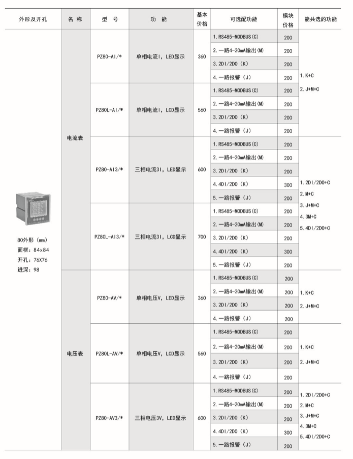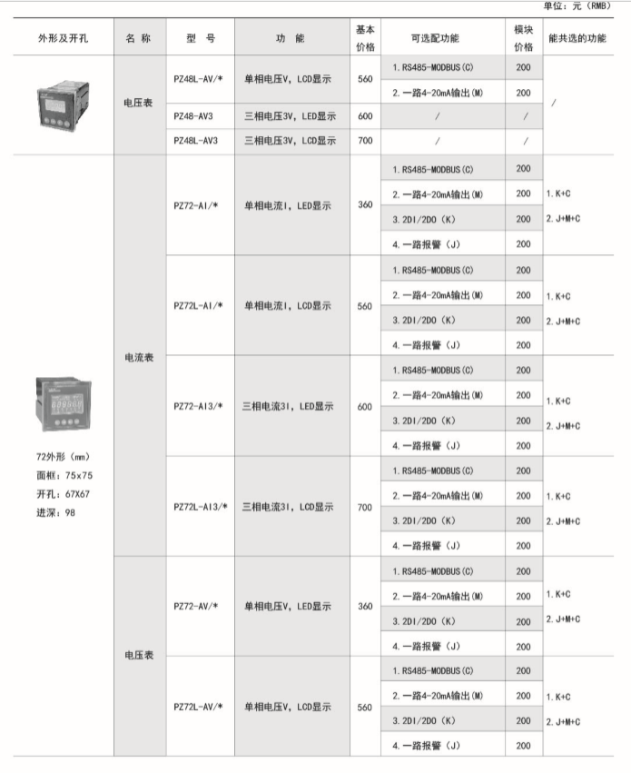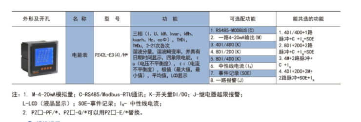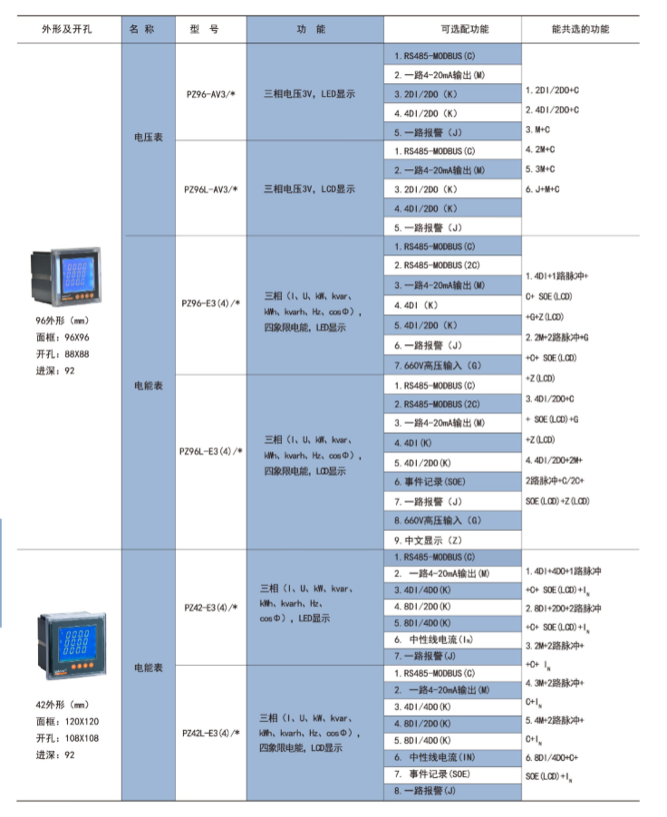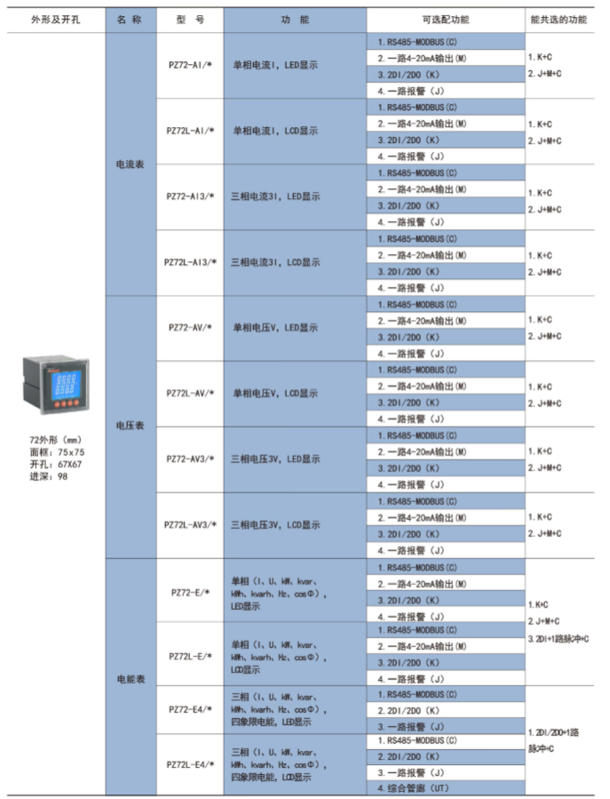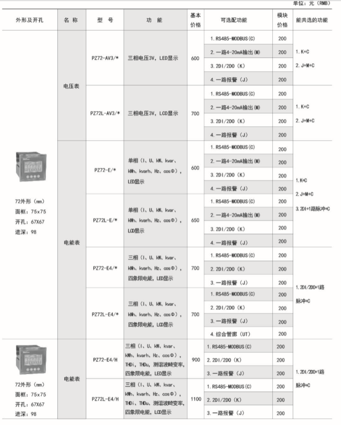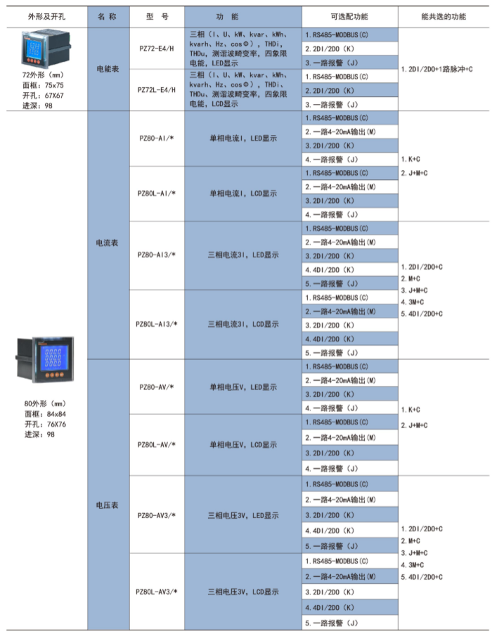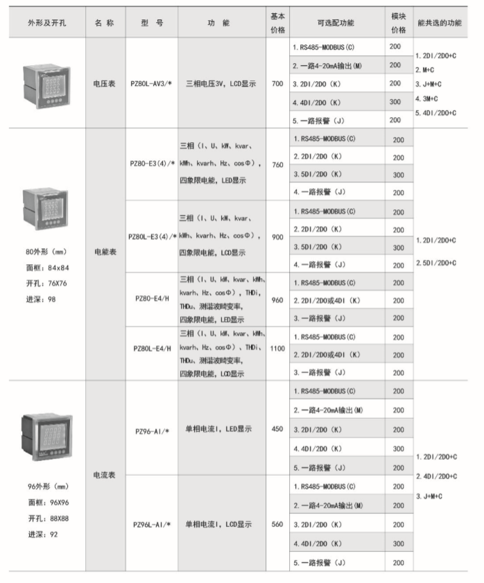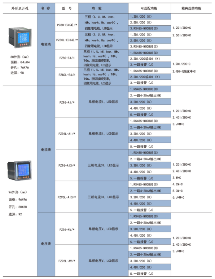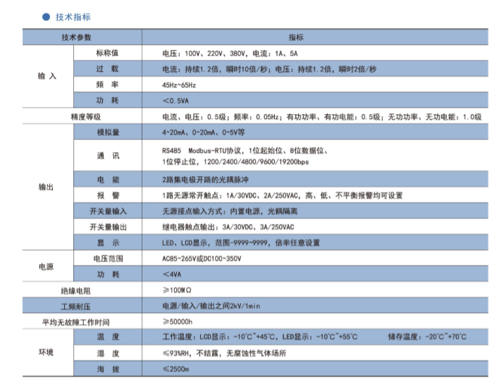 該系列儀表采用交流采樣技術(shù),能分別測量電網(wǎng)中的電流、電壓、功率、功率因數(shù)和電能等參數(shù)??蓭S485通訊接口、模擬量數(shù)據(jù)轉(zhuǎn)換、開關(guān)量輸入/輸出等功能,實(shí)現(xiàn)電力參數(shù)、電氣元件工作狀態(tài)的遠(yuǎn)程傳輸,便于后臺監(jiān)控系統(tǒng)集中檢測。