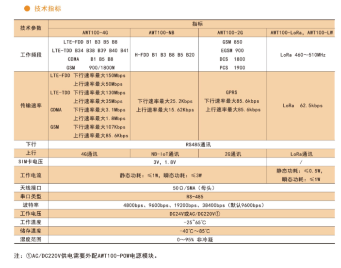 注:①AWT100-2G/NB/4G無(wú)線通信終端能通過(guò)安科瑞平臺(tái)協(xié)議與安科瑞服務(wù)器通訊。