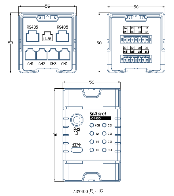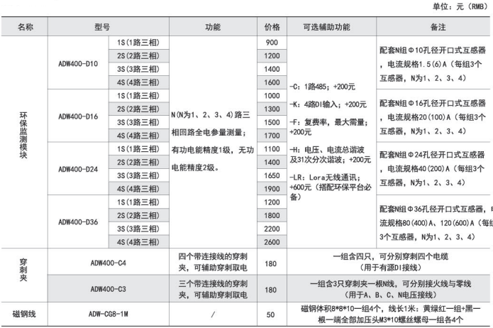 ADW400環(huán)保監(jiān)測模塊主要用于計量低壓網(wǎng)絡(luò)的三相有功電能,同時可選擇四個回路的電流輸入,具有RS485通訊和470MHz無線通訊功能,方便用戶進(jìn)行用電監(jiān)測、集抄和管理??伸`活安裝于配電箱內(nèi),實(shí)現(xiàn)對不同區(qū)域和不同負(fù)荷的分項(xiàng)電能計量,統(tǒng)計和分析。