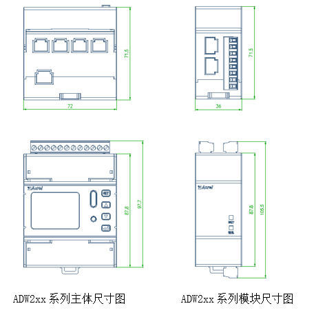 ADW2xx系列導軌式多回路電力儀表方便用戶進行用電監(jiān)測、集抄和管理。可靈活安裝于配電箱內(nèi),實現(xiàn)對不同區(qū)域和不同負荷的分項電能計量,統(tǒng)計和分析。