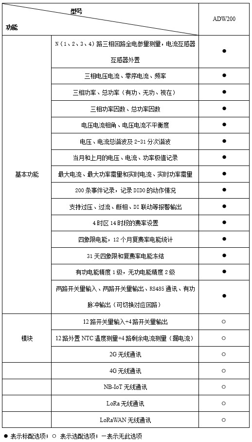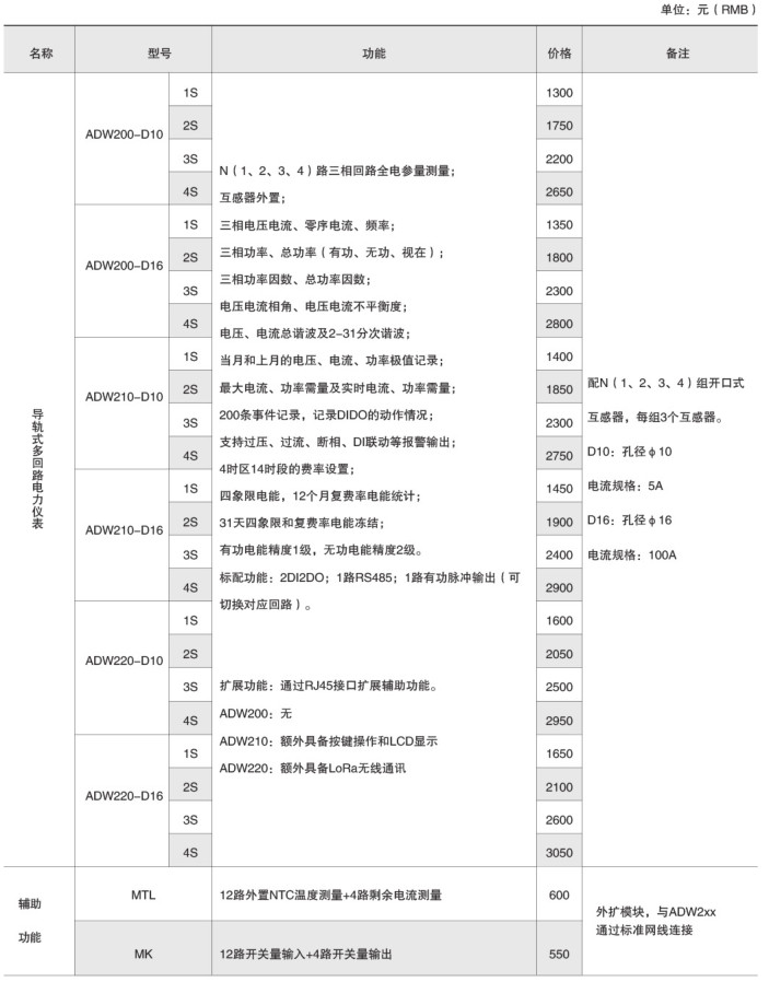 ADW2xx系列導軌式多回路電力儀表主要用于低壓三相回路全電參量測量,同時可選擇四個回路的電流輸入。可直接或間接測量電壓、電流、功率、功率因數(shù)、相角、不平衡度、諧波等參數(shù)。 還可通過其RJ45接口擴展輔助功能,實現(xiàn)DI、DO、測溫、剩余電流測量,以及2G、4G、LoRa、LoRaWan、NB-Lot無線通信功能。
