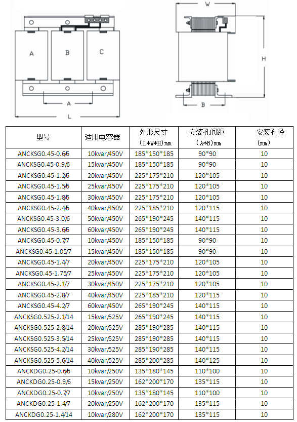 ANCK系列串聯(lián)電抗器與ANBSMJ系列自愈式低壓并聯(lián)電容器配套使用,主要用于提高0.4kV電力系統(tǒng)的功率因數(shù),有效抑制電網(wǎng)的高次諧波,減輕電容器由諧波引起的過載,防止諧波放大,對電容器的安全運(yùn)行,改善網(wǎng)絡(luò)電壓波形,提高供電質(zhì)量和電網(wǎng)安全經(jīng)濟(jì)運(yùn)行起良好作用。