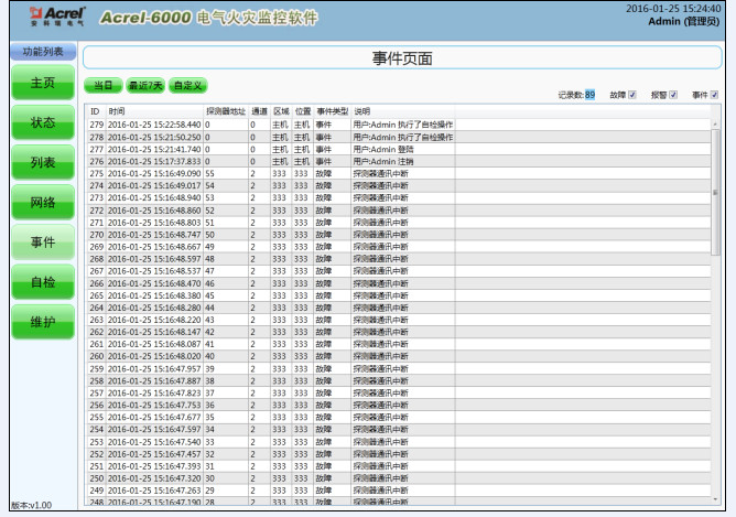 用戶于該界面內(nèi)可查詢?nèi)我鈺r段內(nèi)相應(yīng)報警或動作類型下的記錄,各級操作權(quán)限均可查看該界面的信息。
