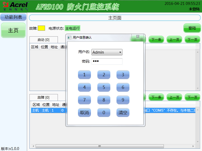 包含“登陸”按鈕、“界面標(biāo)題”、“功能列表”、“系統(tǒng)狀態(tài)欄”四部分組成,可以快速查詢當(dāng)前監(jiān)控狀態(tài),也可用于工作人員登錄操作。