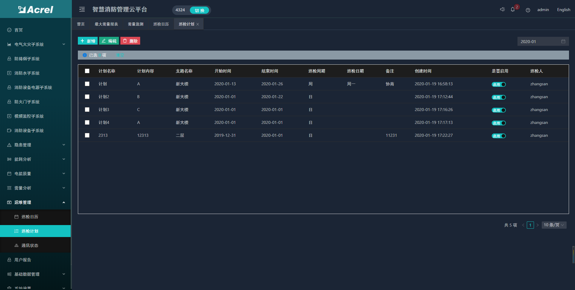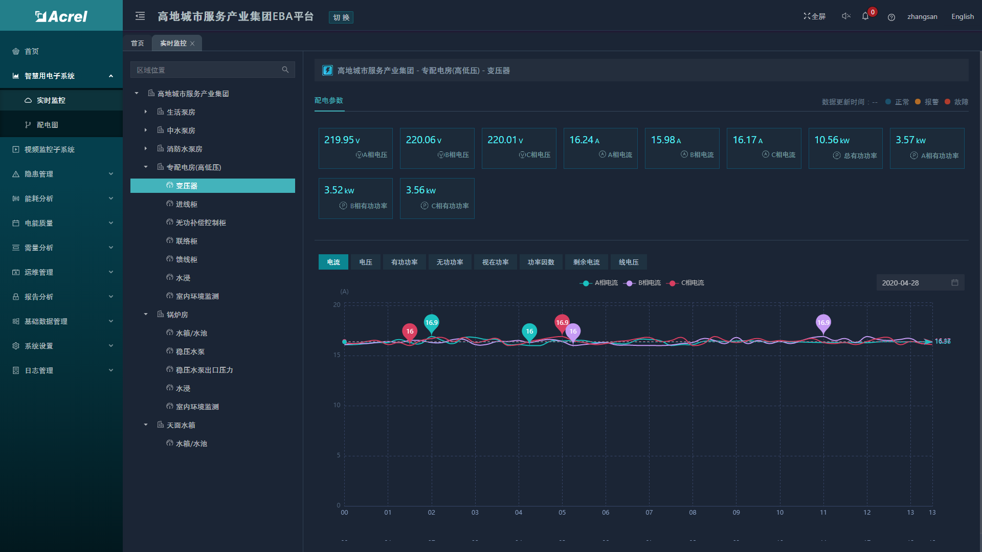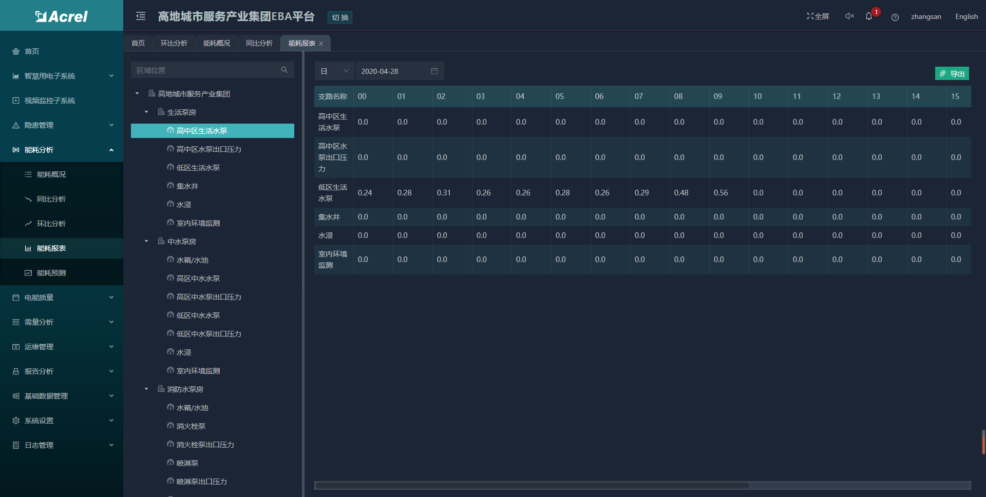 針對(duì)智慧用電部分,系統(tǒng)提供能耗分析功能,按回路可查詢(xún)?nèi)?、月、年的能耗?bào)表和曲線(xiàn)。
