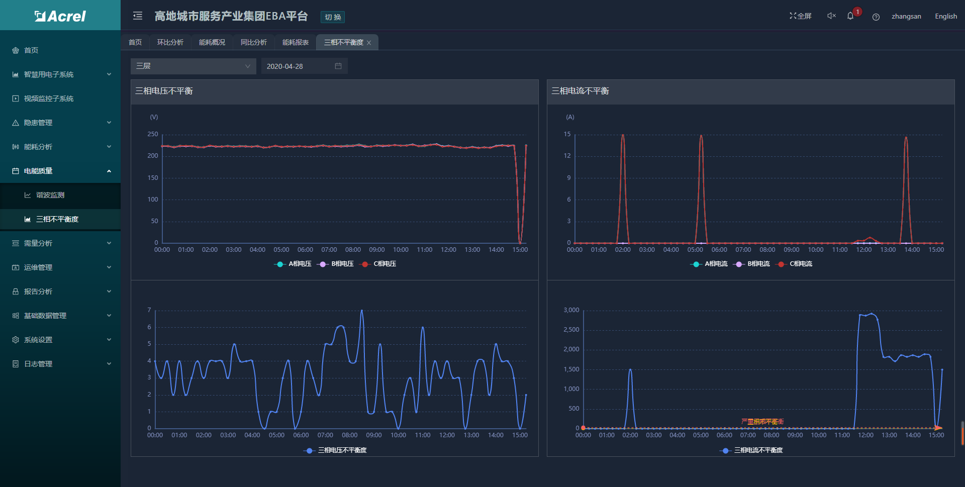 系統(tǒng)提供諧波監(jiān)測(cè)和三相不平衡分析功能。