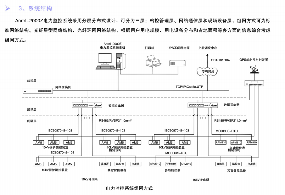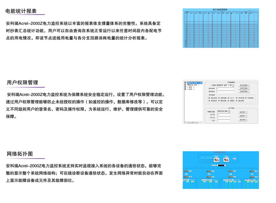 Acrel-2000Z電力監(jiān)控系統(tǒng)是安科瑞電氣股份有限公司根據(jù)電力系統(tǒng)自動化及無人值守的要求,針對35KV及以下電壓等級研發(fā)出的一套分層分布式變電站監(jiān)控管理系統(tǒng)。該系統(tǒng)是應用電力自動化技術(shù)、計算機技術(shù)和信息傳輸技術(shù)、集保護、監(jiān)測、控制、通訊等多功能于一體的開放式、網(wǎng)絡(luò)化、單元化、組態(tài)化的系統(tǒng),適用于35KV及以下電壓等級的城網(wǎng)、農(nóng)網(wǎng)變電站和用戶變電站,可實現(xiàn)對變電站全方位的控制和管理,滿足變電站無人或少人值守的需求,為變電站安全、穩(wěn)定、經(jīng)濟運行提供了堅實的保障。